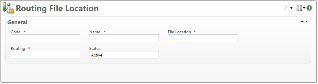 Enter or select a type of routing to associate with the file location. The routing includes information used to sequence and route files during processing. For example, if you select Import Request File Routing, this location can be used for processing imports. |