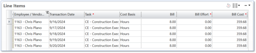 Timesheet Line Items without Zero Effort Transactions displaying