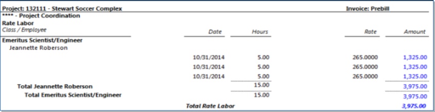 Includes detail after grouping by Class/Unit and Employee/Vendor/Client