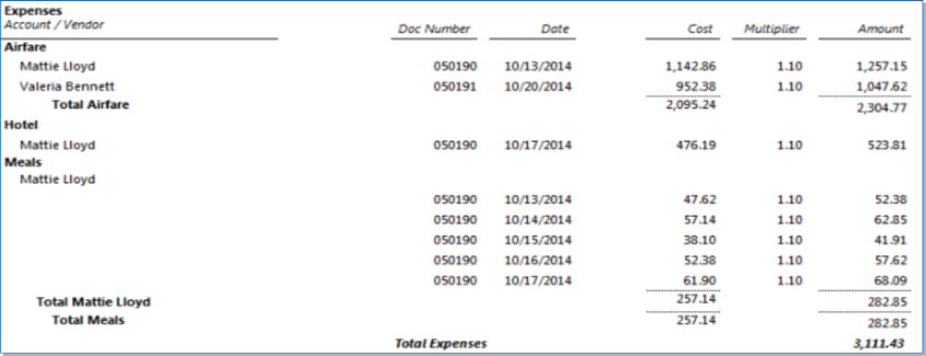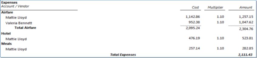 Displays Expense Cost Rates and Multipliers on both the Prebill and Final Bill -