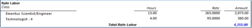 Displays G&A for only Labor