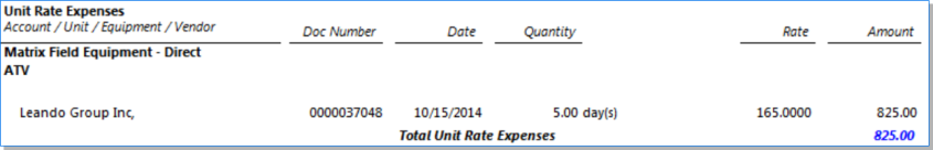 Group by Unit, Equipment, and Employee/Vendor/Client